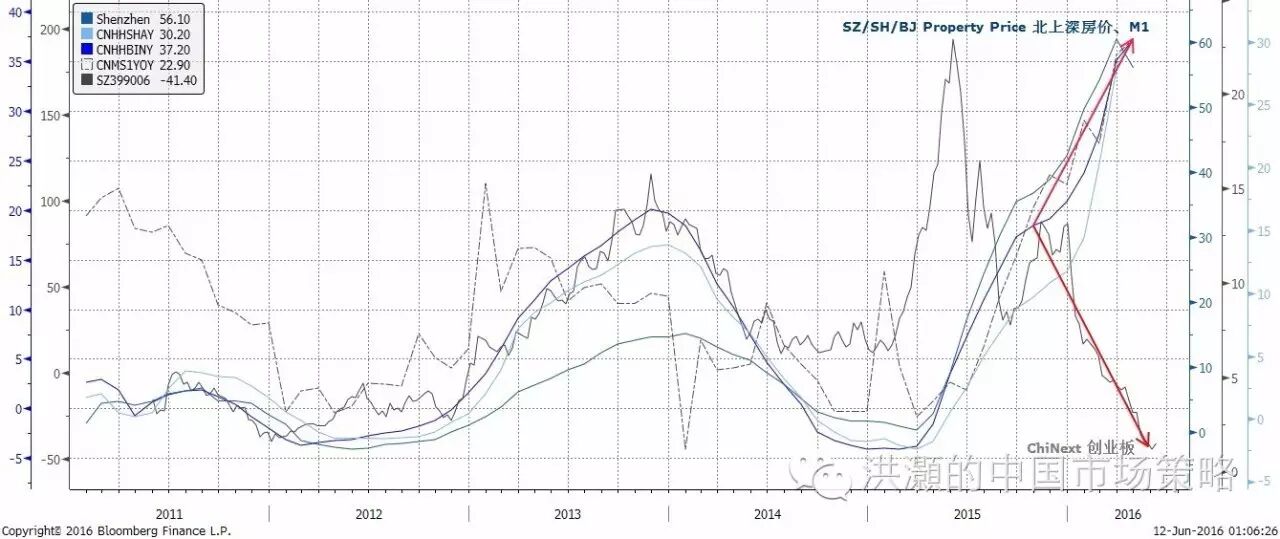 Focus Chart 7: Tier-1 cities property prices surge with M1; the ChiNext has crashed.